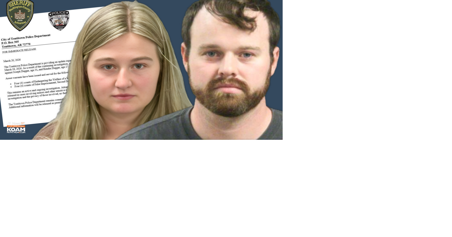 TONTITOWN, Ark. (KOAM) — Northwest Arkansas Police provide an update regarding the incident on March 18, 2026. KOAM BREAKING >> DUGGAR ARREST ON CHILD SEXUAL ABUSE CHARGES “As a result of the continuing investigation, additional charges have been …